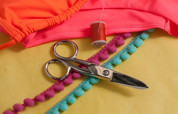 Если в гардеробе из ненужных вещей есть и леггинсы, то с их помощью можно с легкостью подготовиться к пляжному сезону. Яркий цвет и принт не будут помехой, а скорей даже достоинством новой одежды. Верхнюю часть леггинсов можно использовать для создания купальных шорт. А вот перекрученные нижние части штанов послужат верхом купальника. К нему можно добавить различные украшения в виде кольца, броши или бусин. Бретели изготавливаются по желанию.
