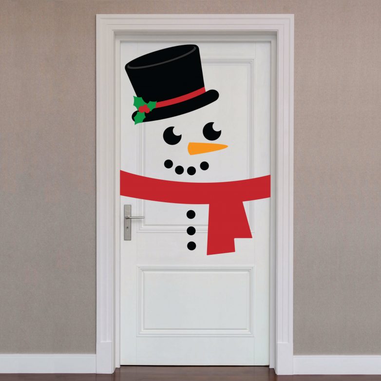 5. Украсьте межкомнатные двери веселыми снеговичками. Для этого нужно всего лишь вырезать из цветной бумаги необходимые элементы, изображенные на рисунке ниже.