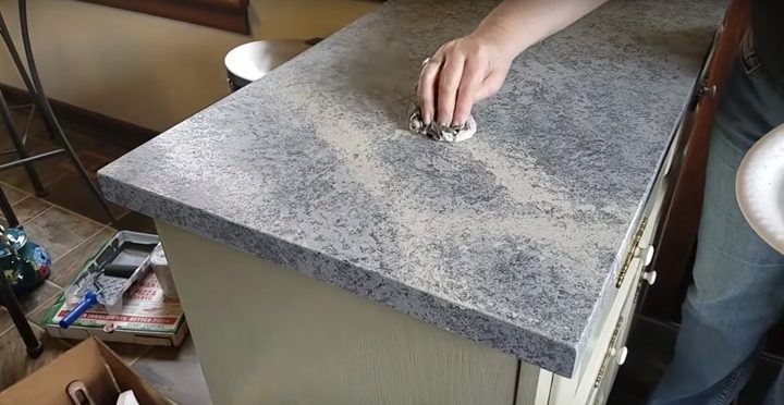 Чтобы придать столешнице внешний вид гранита, используйте самый светлый оттенок, формируя с его помощью «венки» камня.