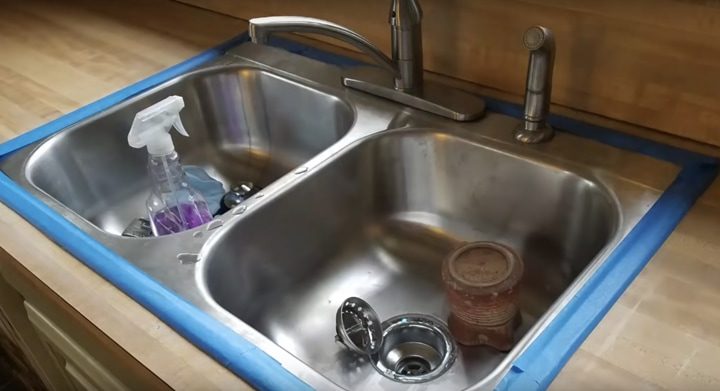 Зашкурьте поверхность наждачкой. Оклейте встроенную технику малярным скотчем.