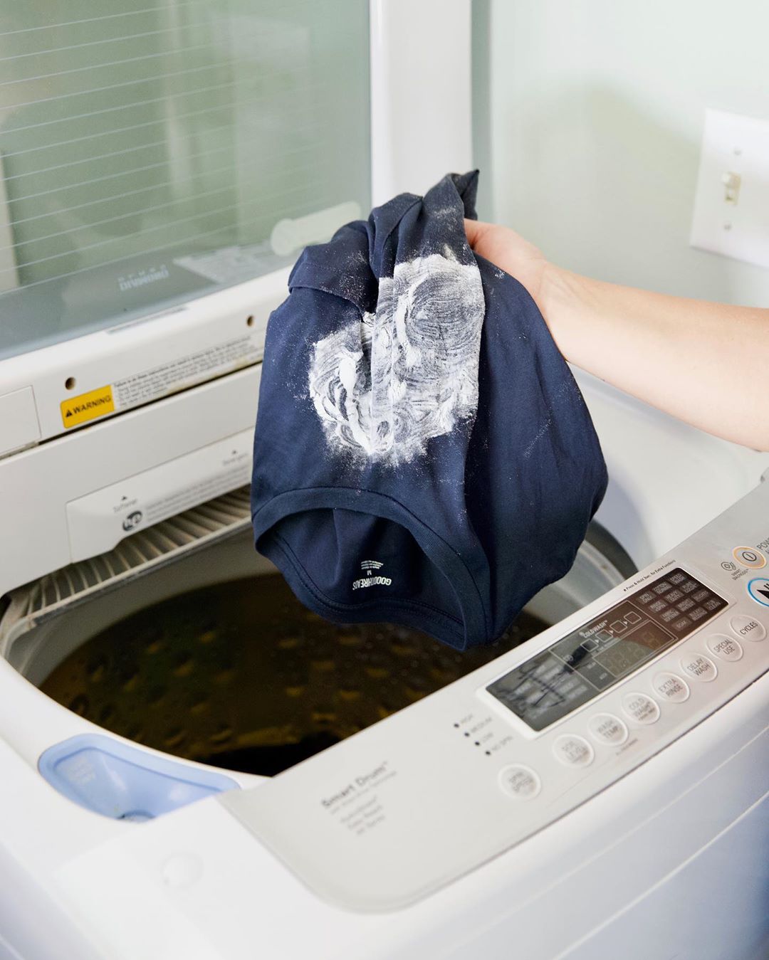 Смешайте 12 чашек воды, 1/4 чашки лимонного сока и 1 чашку перекиси водорода в большой миске. Добавьте 2 чашки смеси к каждой загрузке белья.