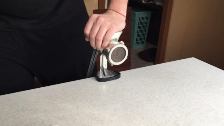 Закрепляем мясорубку на столе. Осталось лишь прокрутить мясорубку около 50-60 раз, и проблема будет решена!