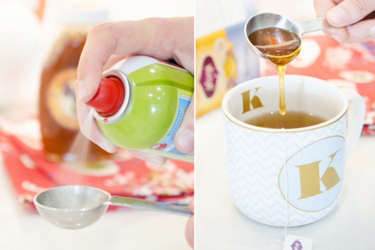 Покройте мерные чашки или ложки кулинарным спреем, чтобы липкие ингредиенты хорошо отставали