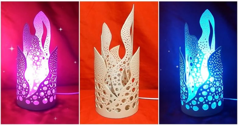 Светильник готов, осталось протереть его и вкрутить лампочку. Ночник эффектно выглядит при разных вариантах освещения. При желании несложно вставить внутрь цветной фильтр или дополнительно покрасить трубу. Можно экспериментировать также с мягким и холодным свечением. В любом случае лампа будет выглядеть шикарно и необычно.