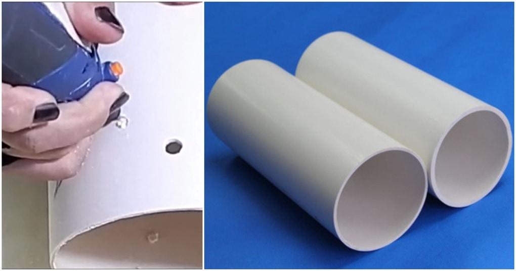 Дальше придется немного поработать дрелью или другим инструментом, способным разрезать ПВХ. Делать это лучше, используя средства защиты. Просверливаем в заготовке круги разного диаметра.