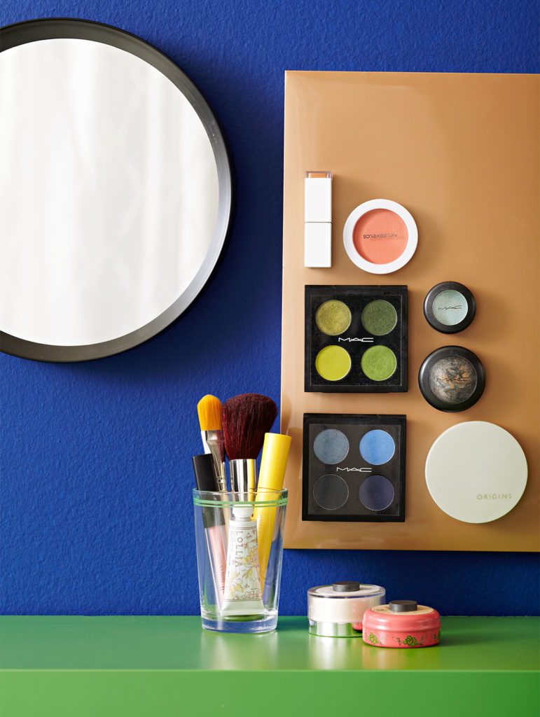 Отличная идея для хранения косметики – магнитная доска, которую очень легко можно сделать своими руками.