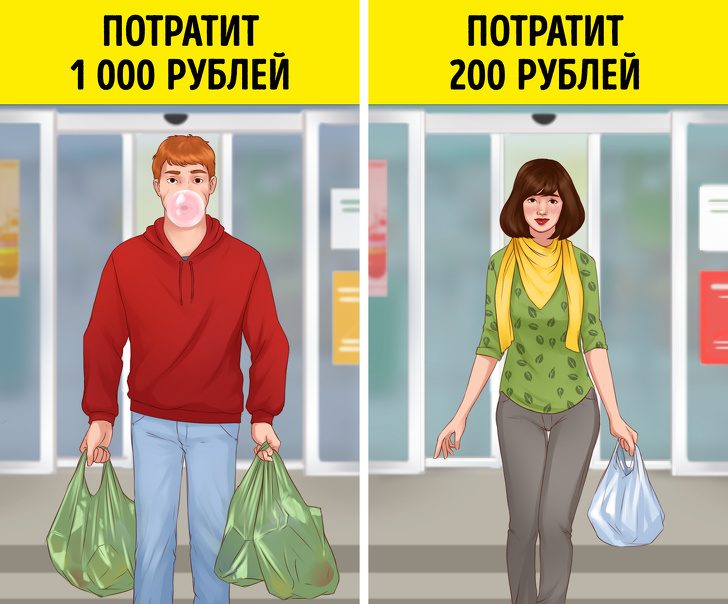 Ходите по магазинам во всеоружии: берите с собой тот самый пресловутый список покупок и двигайтесь в соответствии с ним — это дисциплинирует.Обращайте особое внимание на самые нижние и верхние полки — товары подешевле будут именно там.Не берите корзинку, несите то, что планируете приобрести, в руках. Нужно купить несколько товаров — берите корзинку, но не тележку, это поможет не набрать лишнего.Помните, что подготовка — ключ к осознанным покупкам.4. Не жуйте жвачку