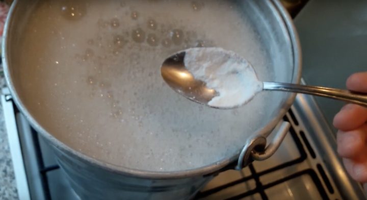 На большое ведро насыпьте пол пачки пищевой соды, добавляя ее по одной ложке постепенно.
