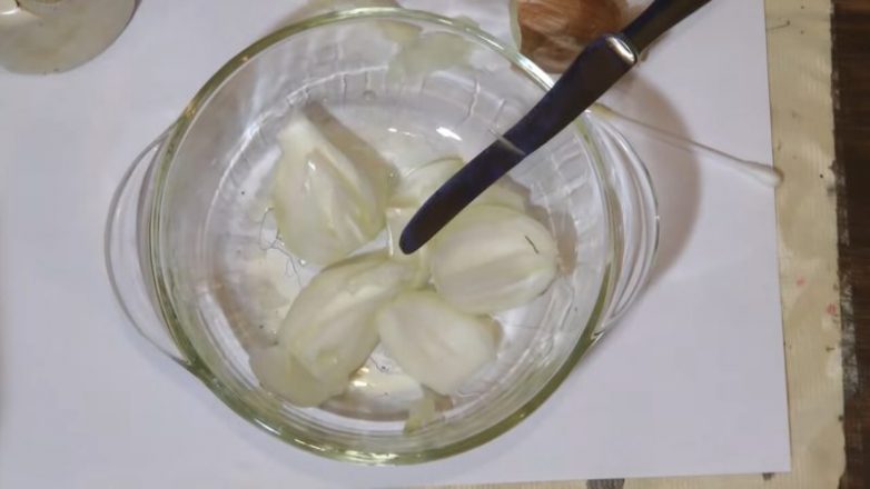 Для этого способа вам понадобится стеклянная посуда достаточной глубины, репчатый лук и подсолнечное масло. Лук нарежьте произвольно и положите в миску — его яркий и стойкий запах будет приманкой для тараканов.