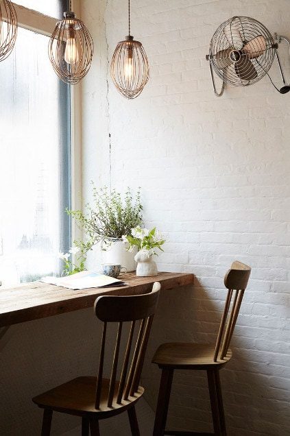 Для обустройства кухни не обязательно вкладывать много денег в ремонт. Просто немного расширьте и удлините подоконник и приобретите несколько изящных барных стульев. Так Вы легко создадите уютную обеденную зону.