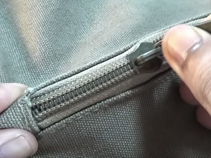 Расстегните молнию, чтобы можно было удобно подобраться к обеим сторонам. Снимать бегунок не обязательно, можно проделать все действия, пока он будет в молнии.