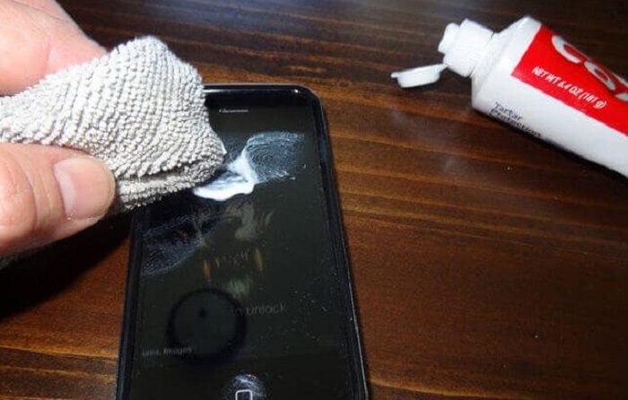 С крохотными царапинами сможет справиться обычная зубная паста (желательно брать вариант без каких-либо добавок). Она является максимально щадящим абразивом, поэтому никак не повредит экран при непосредственном воздействии на него. Все, что вам нужно – это взять зубную пасту, нанести небольшое количество на царапину и при помощи кусочка мягкой ткани несколько минут растирать средство круговыми движениями. Результат будет считаться положительным, если дефект полностью исчезнет или станет практически незаметным.