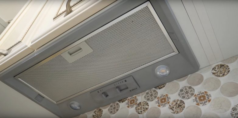 На кухне, особенно если вы много готовите, не обойтись без вытяжки. В маленькой же кухне, чтобы сэкономить место, лучше всего сделать встроенную вытяжку.