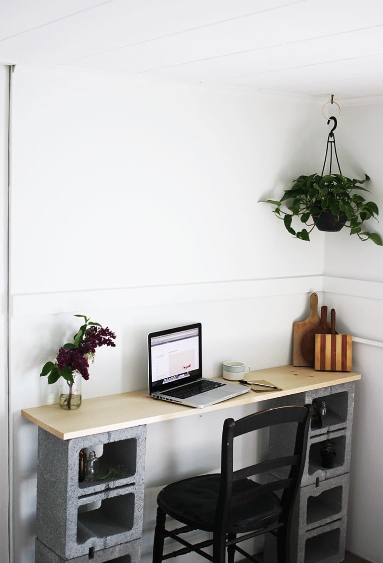 Оказывается, из бетонных блоков можно сконструировать любые предметы мебели, в том числе и прикроватные тумбочки. Один из таких примеров вы можете видеть на следующем фото.На такой тумбочке можно прекрасно закрепить необычную лампу, поставить цветы и, здесь даже найдется место для ваших любимых книг.
