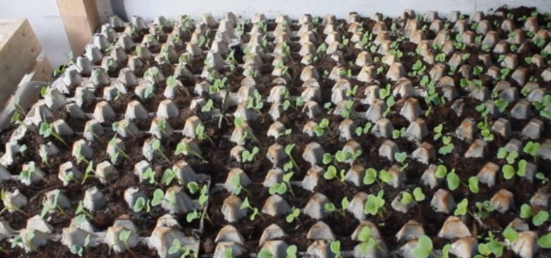 Удобно лотки использовать и для высадки рассады. Для этого в донышках проделывают отверстия, помещают емкость на поддон и наполняют почвой, в которую высаживают по несколько семян, и дожидаются всходов.После чего картонную конструкцию так и вкапывают в грядку, получая и ровную высадку, и защиту от сорняков, и защиту от испарения влаги (пока не разложится сама бумага). Для надежности можно брать сразу не одну, а 2-3 картонных упаковки.