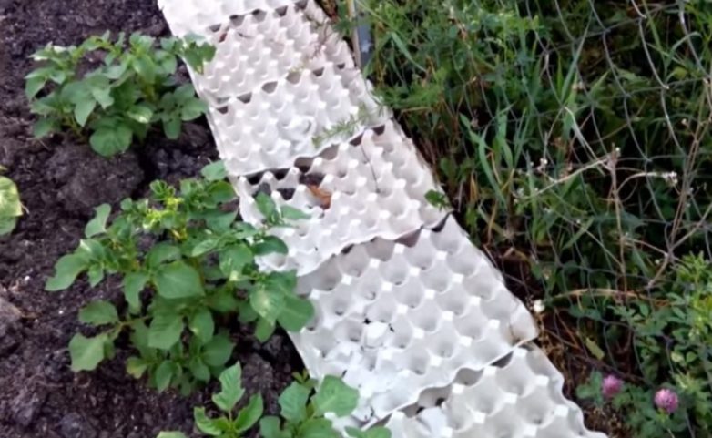 Если больших лотков (на 30 яиц) собралось предостаточно, то ими можно выложить и дорожки между грядками. На один сезон их точно хватит, а впоследствии картонные коробки можно будет попросту закопать в землю — бумага плавно разложится на безопасные вещества.