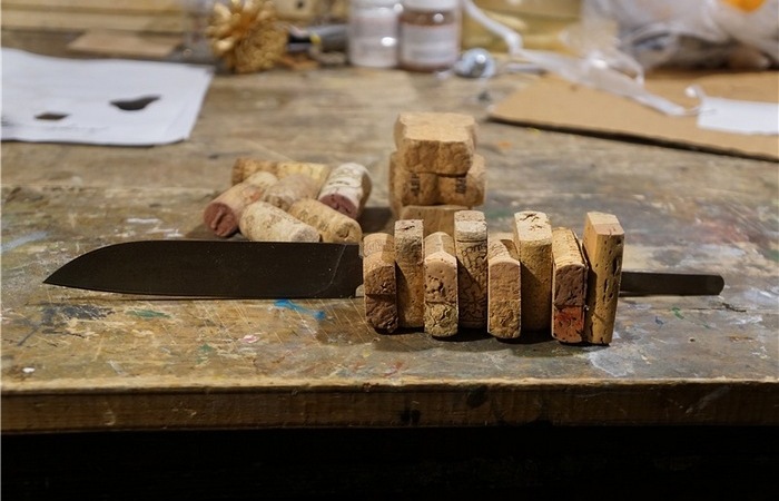Рукоять для ножа из винных пробок