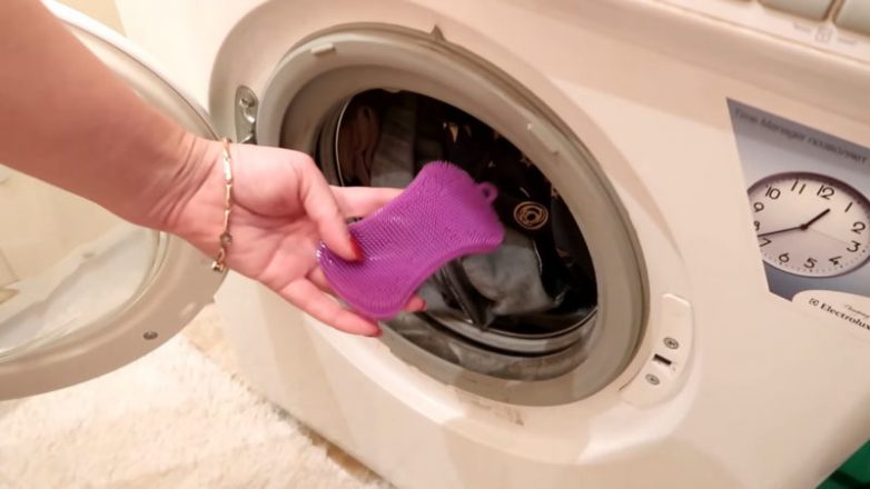 Подробнее о лайфхаке с силиконовой губкой во время стирки вещей смотрите в видео ниже:
