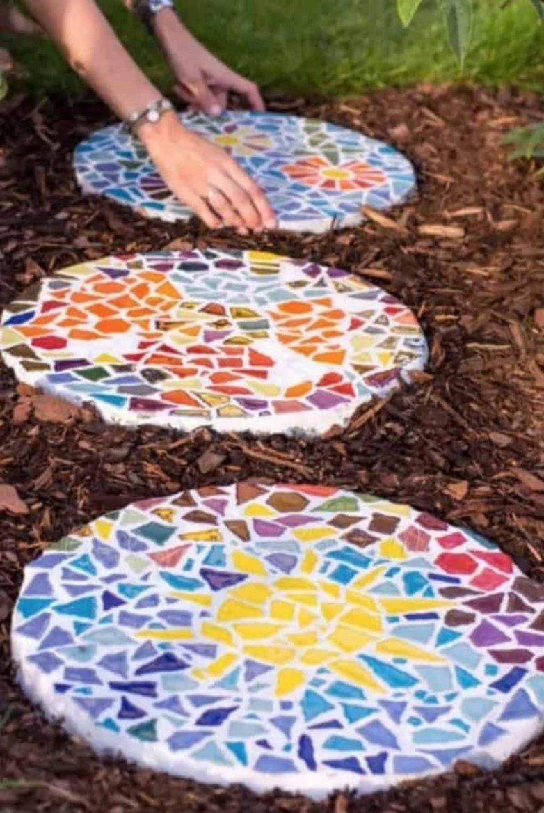 Элементы мозаики — отличный способ облагородить приусадебный участок. Это ее использование позволяет создать дивные узоры на садовых дорожках, добавить в обстановку новизны и сделать ее уникальной.