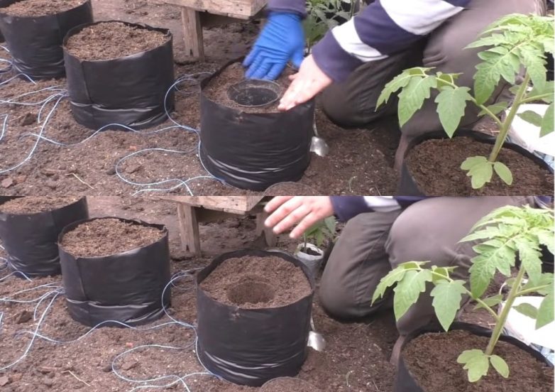 Простая, но эффективная теплая грядка готова. Во-первых, такой «горшок» – дополнительный слой между растением и холодной землей, во-вторых, в нем почва прогревается гораздо быстрее. К тому же такой способ высадки решает и проблему лишней влаги, так как растения находится над влажной холодной землей. Когда же корень достигнет дна, на улице и в земле уже благоприятные условия, «горшок» же нужно просто убрать, а землю собрать с помощью граблей.