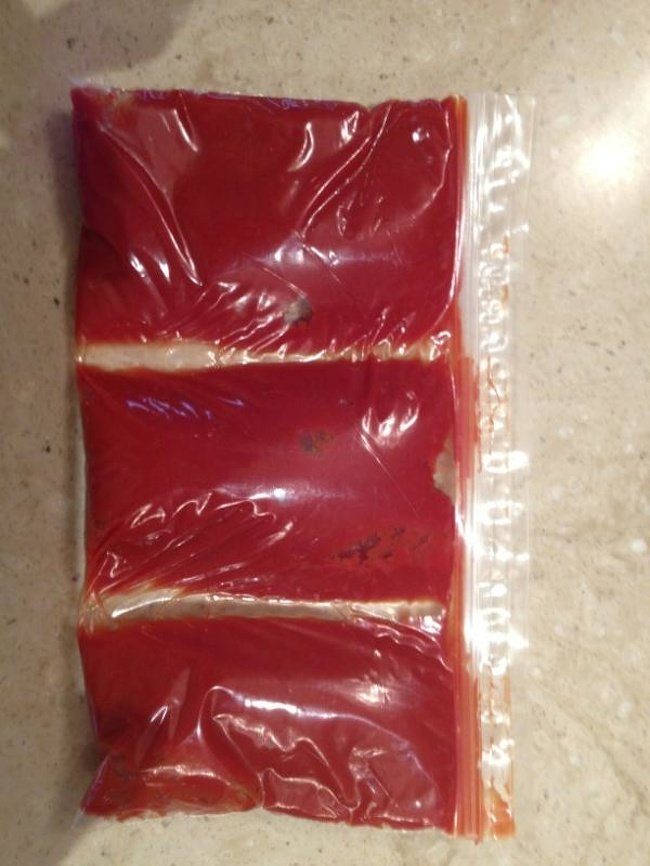 Оставшийся соус можно заморозить. Вылейте его в герметичный мешок, и через час вы получите достаточно твердую консистенцию. Его можно нарезать кубиками и добавлять в тарелки.