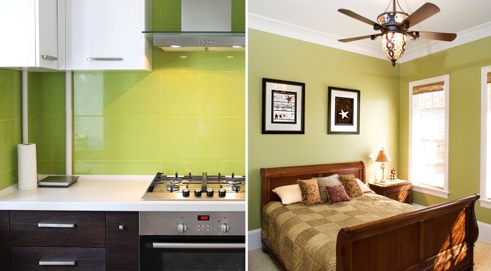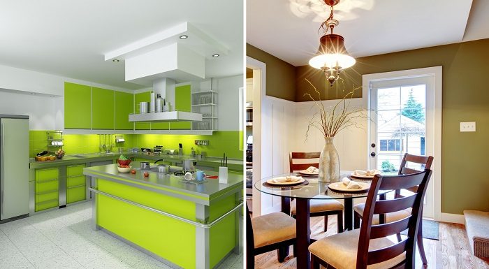 Для кухни и столовой идеально подойдет салатовый. Благодаря ассоциации со свежей зеленью, этот оттенок поднимает аппетит и настроение. Причем это правило одинаково действует как на взрослых, так и на детей.