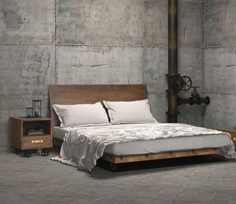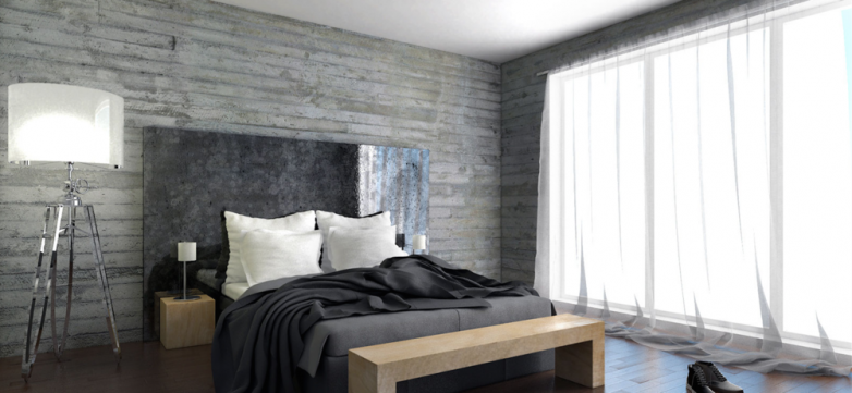 Вы можете использовать бетон отдельно или в сочетании с древесиной или другими материалами. Для деревенского промышленного декора спальни, попробуйте выбрать открытые стены с полностью видимыми водопроводными трубами.