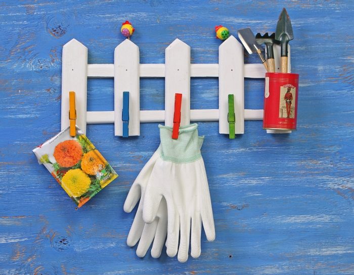 Как только вы купили новые садовые инструменты, обязательно тут же сделайте на них пометки с инициалами, на случай того, если вам их придётся одолжить соседям. Этот способ поможет избежать путаницы во время возврата инструмента. Ко всему прочему, не мешало бы сделать отверстие в верхней части ручки и, продев в него плотный шнурок, соорудить петлю. Теперь вы смело можете вешать ваш инструмент на любой крючок или выступ, и он не будет валяться у вас под ногами.