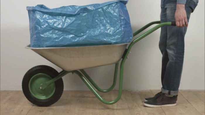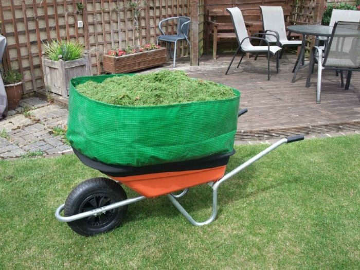 Устал по двадцать раз за час бегать туда-сюда с тачкой, стараясь вывезти мусор? Тогда этот лайфхак специально для вас. Возьмите несколько старых мешков из-под сахара (или любые другие) и сшейте из них один огромный мешок. Это на первый взгляд простое приспособление поможет увеличить объём тачки как минимум раза в три.