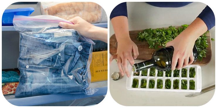 Зелень всегда так быстро вянет, и всегда так жаль ее выбрасывать! Нарежьте ее заранее, добавьте немного воды и заморозьте в форме для льда. Добавляйте в супы и соусы по необходимости.