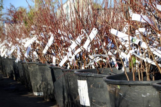 Контейнеры с саженцами разного объема в питомнике. Фото автора