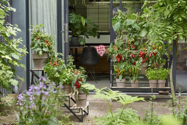 Если места у вас не так много, овощи можно разводить в обычных горшках и составлять их них оригинальные композиции. Ключ к успеху – подобрать для огорода такие растения, у которых были бы одинаковые потребности в составе почвы, режиме полива и в уходе в целом. Эти культуры должны быть примерно одинаковыми по высоте, чтобы не заглушать друг друга.