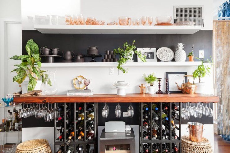 Но есть еще один вариант — убрать из кухни то, что вам не требуется каждый день. Это не означает, что вы должны каждый раз бегать за тарелкой и кружкой в гостиную, но винный бар можно вполне устроить за пределами кухни.
