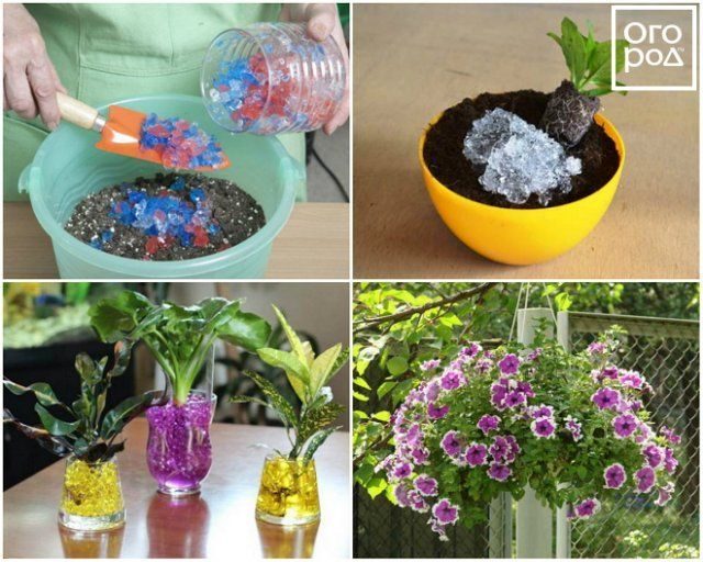 Этот специальный гель представляет собой гранулы, которые набухают, впитывая влагу, и потом постепенно отдают ее корням растений в течение всего жаркого дня.
