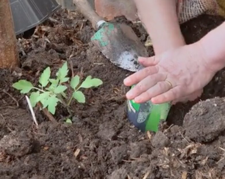 Совет: после того, как пересадили куст томатов, возьмите литровую или 1,5-литровую пластиковую бутылку, срежьте дно, но оставьте крышку, проделав в ней ножницами или ножом несколько отверстий. Закопайте бутылку рядом с посаженным растением. Это позволит не заливать томаты, а подавать им постепенно воду капельным способом. Это очень хороший способ, который позволит вам обеспечить доступ влаги в течение всего периода роста.