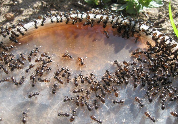 Все дело в парах спирта, которые крайне неприятны для муравьев. Разводить нашатырный спирт необходимо с обычной водой. Соотношение 1 доля спирта к 10 долям воды. Многие разводят на глаз, не сильно заморачиваясь на данный счет. Однако, злоупотреблять с долей спирта в воде также не стоит. Все должно быть аккуратно и в меру. Приготовленный раствор необходимо заливать в муравейник. Желательно сделать это так, чтобы вода прошла по всем каналам. Самое главное в данном вопросе сделать так, чтобы погибла королева муравьев. Только в этом случае удастся полностью уничтожить муравейник.