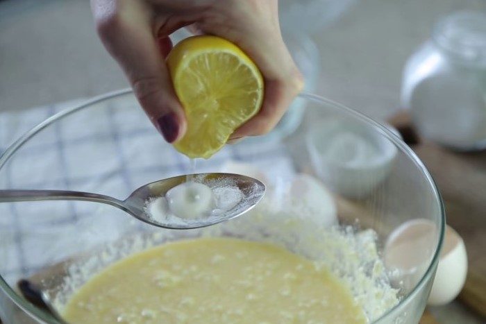Другой вариант — с использованием лимонного сока. Преимущество данного способа — у мучных изделий появится тонкий цитрусовый аромат. Смешайте 1 ч.л. соды и 9 ч.л. сока лимона, влейте в тесто и хорошо перемешайте. Лимон также можно заменить лаймом или кислым соком. Например, яблочным, ягодным или виноградным.