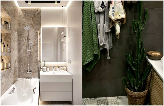 Проблемой многих ванных комнат является отсутствие уюта. В этом нет ничего удивительного, ведь влажная среда и отсутствие света — не самые благоприятные условия для живых растений, картин и деревянной мебели. Однако, если вы твердо решили, что в вашем санузле должны быть растения, выбирайте искусственные. Несмотря на то, что дизайнеры плохо относятся к этому украшению, в ванной комнате — можно! Только постарайтесь выбрать те, что максимально похожи на настоящие, и приготовьтесь к тому, что время от времени их придется менять.