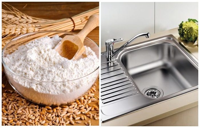 1. Полностью удаляет даже застарелый жир. Дело в том, что жидкие очищающие вещества убирают жировые отложения не до конца. Даже после тщательного мытья на поверхности остаются микроскопические частицы моющего средства, что довольно негигиенично. Мука же не только растворяет жирный налет, но и скатывает его. Благодаря этому раковину можно отмыть до идеальной чистоты.