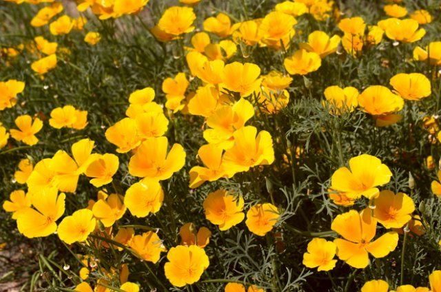 Это удивительно красивое растение попало в Европу из Северной Америки, где растет в регионах с довольно засушливым климатом. Не стоит обманываться его хрупким видом – этот цветок достаточно жизнеспособен. При этом эшшольция очень красива: ее цветки бывают желтого, красного, белого, розового и оранжевого цветов, а листва отливает зелено-голубым оттенком.