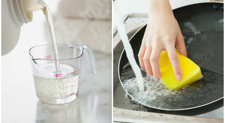 Забудьте о ершиках, железных губках и поломанных ногтях. Вместо этого замочите посуду, используя кондиционер и теплую воду. Оставьте примерно на час или до тех пор, пока средство не подействует.