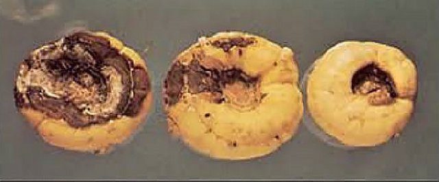 Инфекционное заболевание, вызываемое почвенными бактериями Pseudomonas marginata. Провоцируется тяжелыми сырыми почвами с недостаточной кислотностью и высоким уровнем грунтовых вод, а также постоянной влажной погодой при умеренной температуре воздуха.