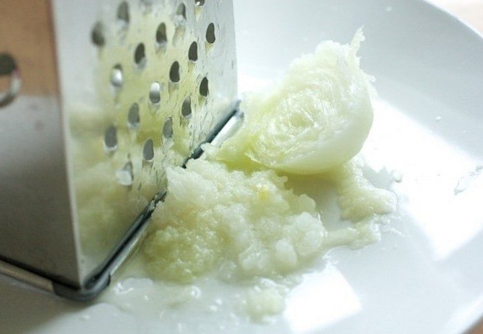 Тертый лук не испортит цвет одежды и избавит от блестящего следа