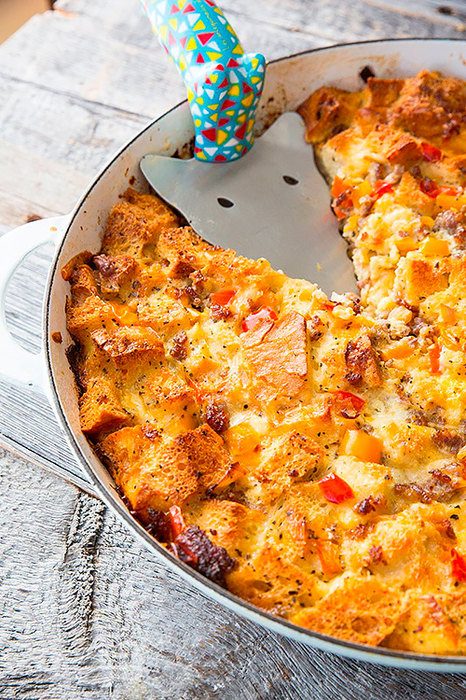 Это блюдо американской кухни напоминает нечто среднее между запеканкой и омлетом. Самый простой рецепт включает всего несколько ингредиентов: черствый хлеб, ветчину, сыр, лук, яйца, сливки и сливочное масло.