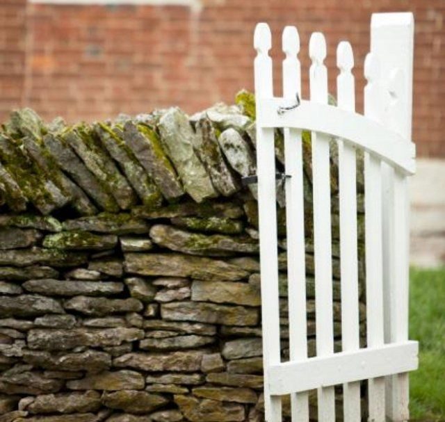 Есть такие комбинации материалов, которые всегда будут в моде. Например, белая калитка из штакетника великолепно смотрится на фоне забора из замшелых камней. Вместе они создают органичное сочетание прочности и элегантности.