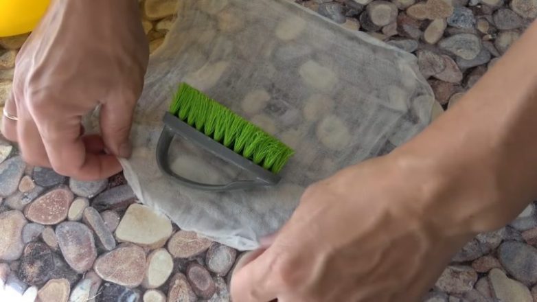 Просто протираем поверхность щеткой средней жесткости, периодически смачивая марлю в соленой воде.