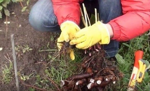 Если вы намереваетесь осенью размножать многолетники делением корневищ, то вам нужно все так же аккуратно вынуть взрослые кусты из земли, омыть корневища, удалить при необходимости подсохшие или подгнившие части, острым ножом разрезать корневища на части-деленки так, чтобы почка возобновления осталась на каждом кусочке, присыпать срезы древесным углем и высадить растения на новое подготовленное место. Рассаженные деленки нужно не только тщательно замульчировать, но и укрыть лапником. Иначе зимой молодые растения могут подмерзнуть.