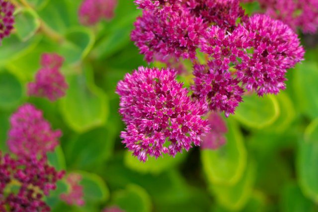 Очиток видный (существуют и другие названия – седум, заячья капуста, очиток скрипун) – многолетнее растение, которое можно встретить в самых разных местах: в цветниках, у подъездов, вдоль дорожек. Растение абсолютно неприхотливо к условиям произрастания, поэтому прекрасно себя чувствует даже в не самых благоприятных условиях. Единственное, что требуется очитку для красивого цветения, – солнечный участок без застоя воды.