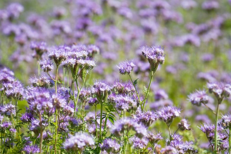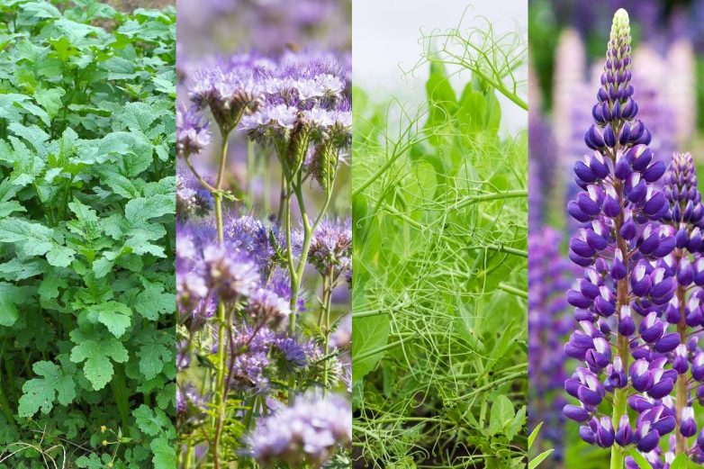 Универсальным сидератом можно назвать фацелию. Она растет на любых типах почв. Прекрасно переносит заморозки, тень и засуху. А кроме того является отличным медоносом, отпугивает вредителей и украшает сад красивыми синевато-сиреневыми цветами.