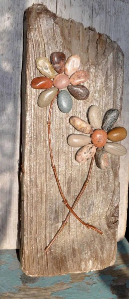Панно в стиле кантри из камней и куска дерева